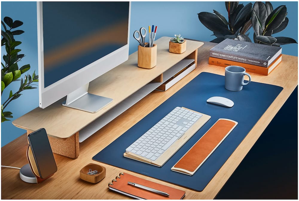A desk pad might seem simple, but the Grovemade Matte Desk Pad is a standout product. I use one on my home desk, and it's fantastic. The cork bottom ensures it stays in place, while the top provides a smooth, pleasant surface for mousing and writing. It's also aesthetically pleasing, adding a touch of elegance and color to any desk setup.