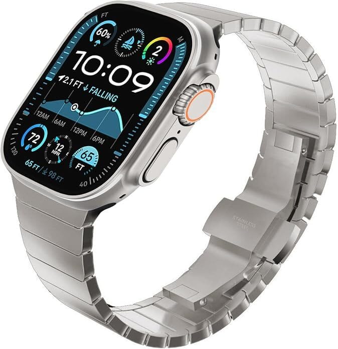 Looking for a dressier Apple Watch band that won't break the bank? Check out this KADES stainless steel band, available in a variety of colors. I've had the silver one since June, and it pairs nicely with a suit in professional settings.