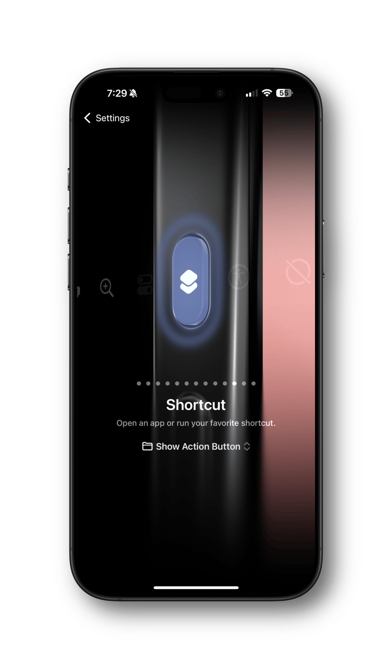 (While you can add more than 8 shortcuts to the folder, only 8 will display in the window when triggered by the Action Button.)